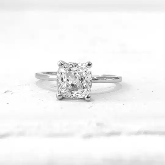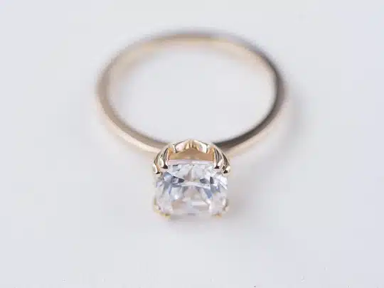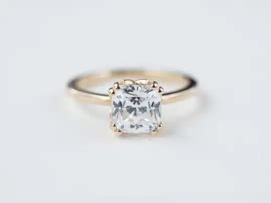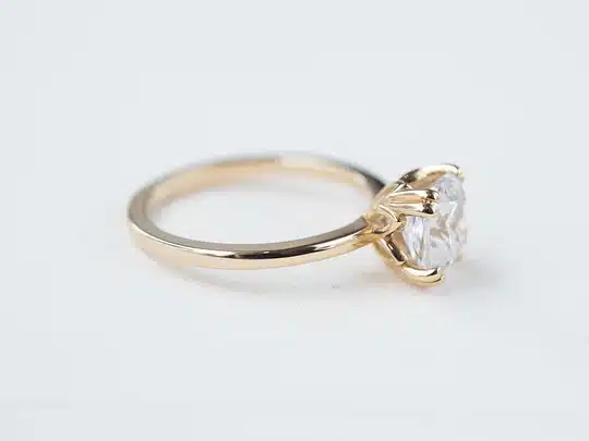 The Jane ring takes a classic solitaire setting and elevates it with our signature petal cage. This petal prong engagement ring is beautiful from all angles.